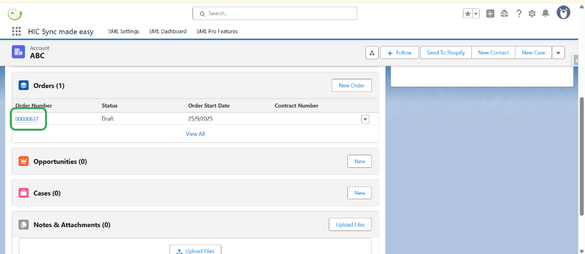 Step 14: Confirm that the Draft Order has been successfully synced to Shopify using the Send to Shopify feature.