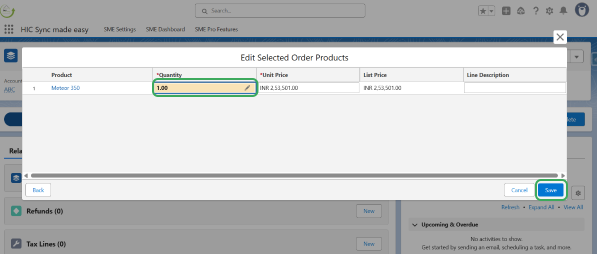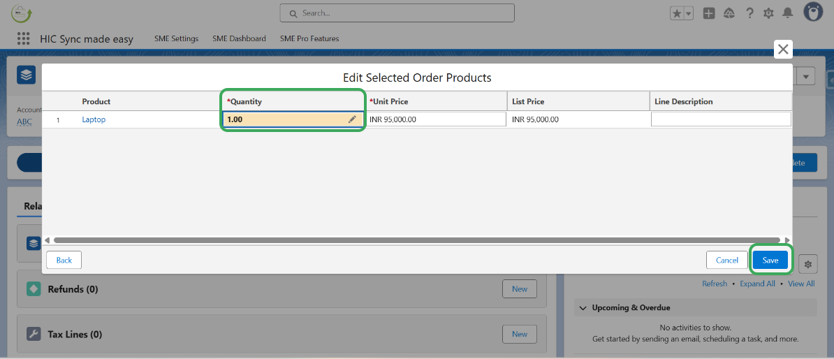 Step 6: Enter the “Quantity” for the Product and click Save.