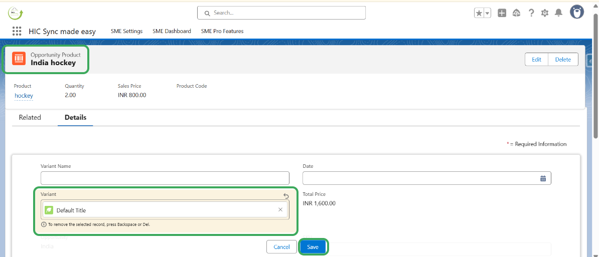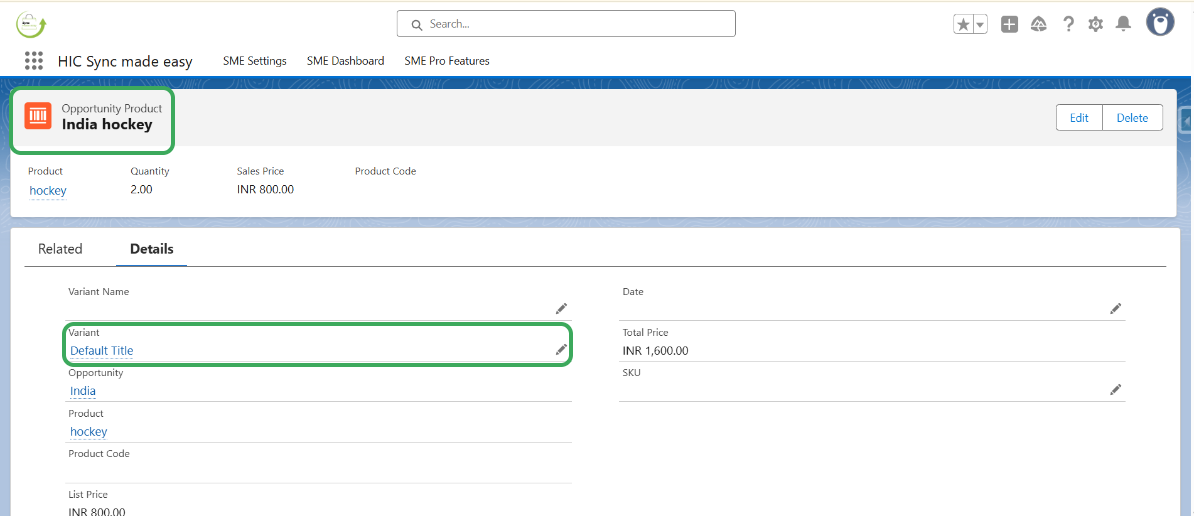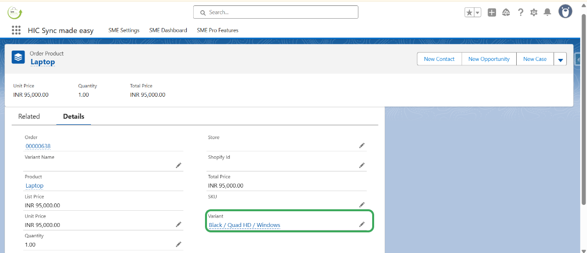 Step 9: Verify that the Variant has been successfully added to the Order Product.