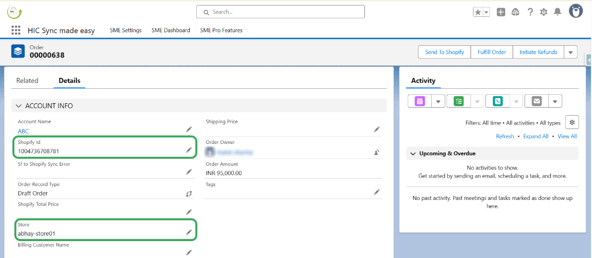 Step 12: Verify that the “Shopify ID” and “Store Name” are generated, then go to the Shopify store and search for the Draft Order.