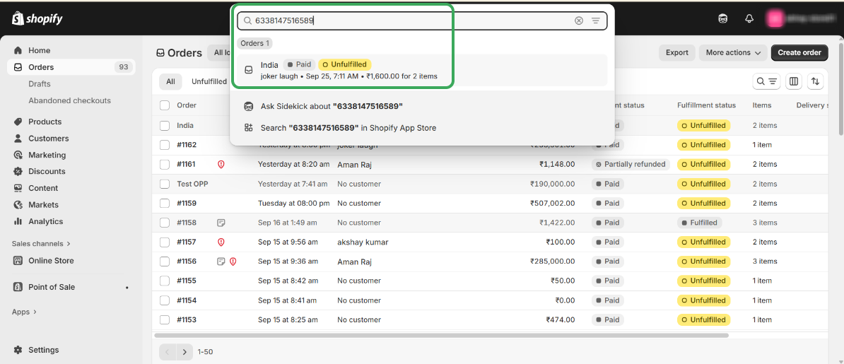 Step 16: Use the “Shopify ID” to search for the Order in your Shopify store.