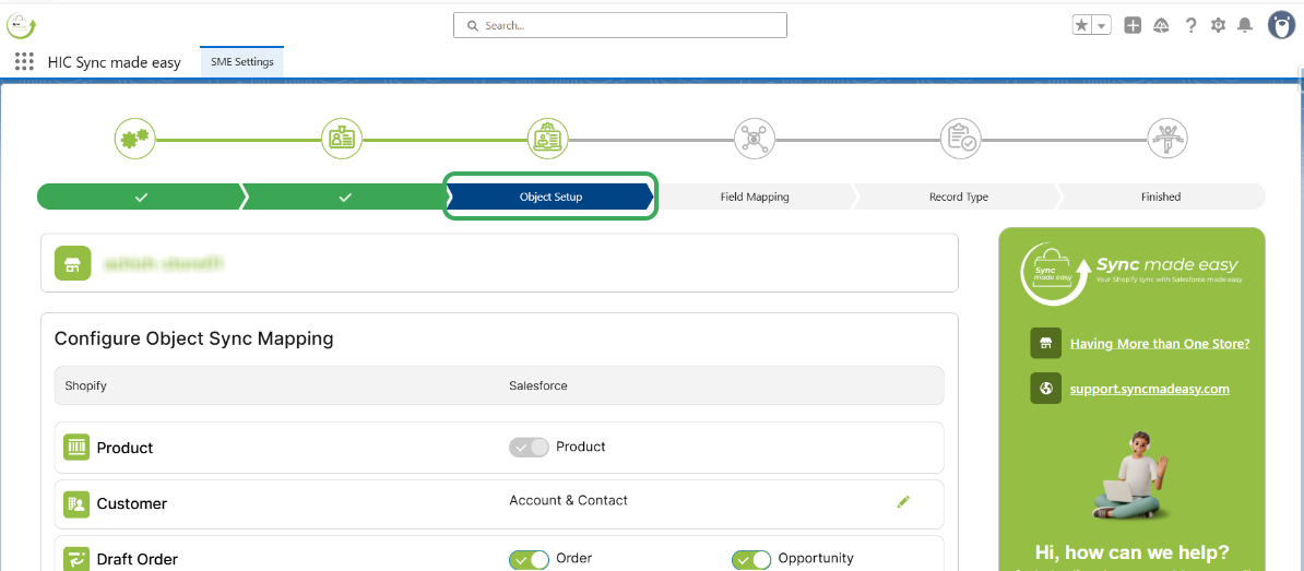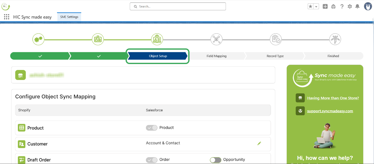 Step 1 – Go to the “Object Setup” page under the “SME settings” in Sync Made Easy.