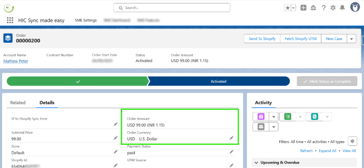 Step 6: Open the Order in Salesforce and verify that the Order Currency matches the currency you selected.