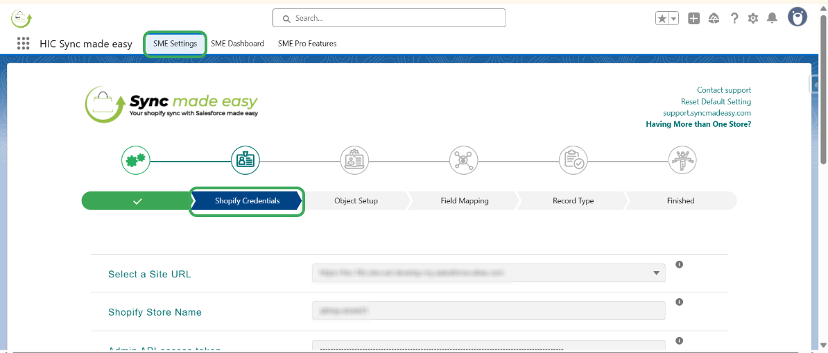 Step 1 – Open Shopify Credential Step of SME Settings app.