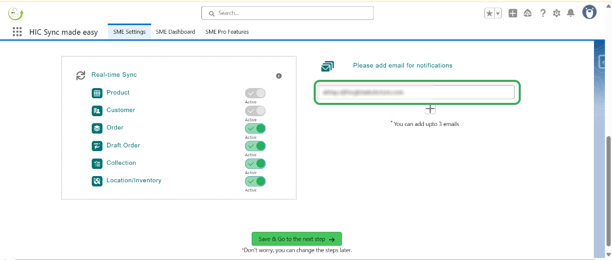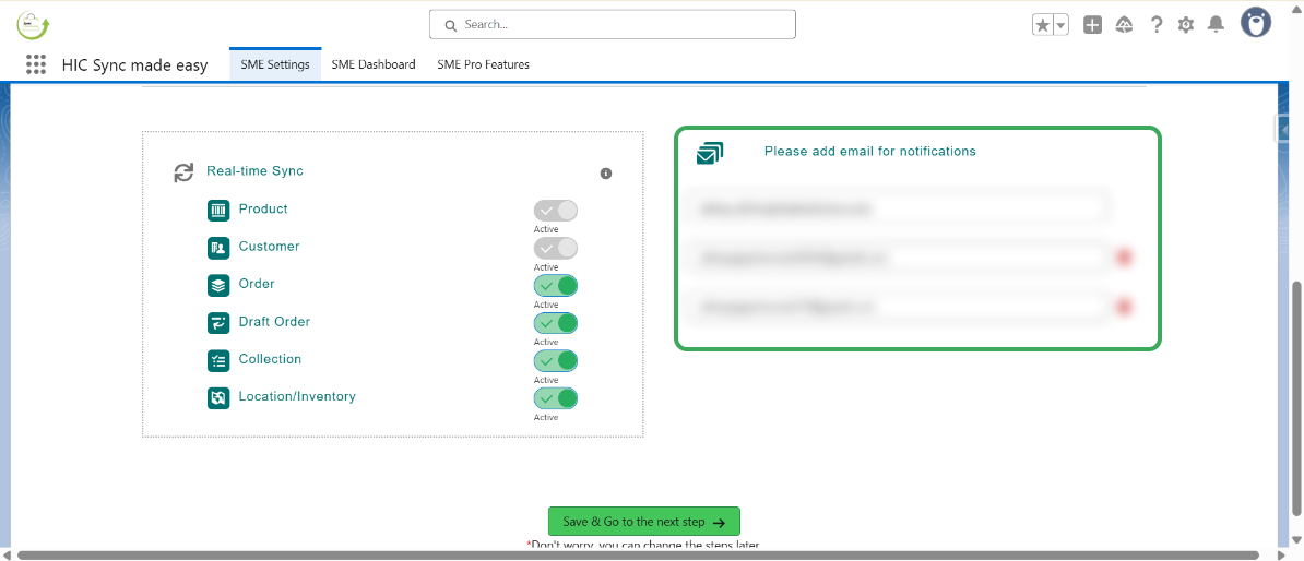 Step 2 – Scroll down the Shopify Credential page, where you can add up to three email IDs for any notifications related to the app.