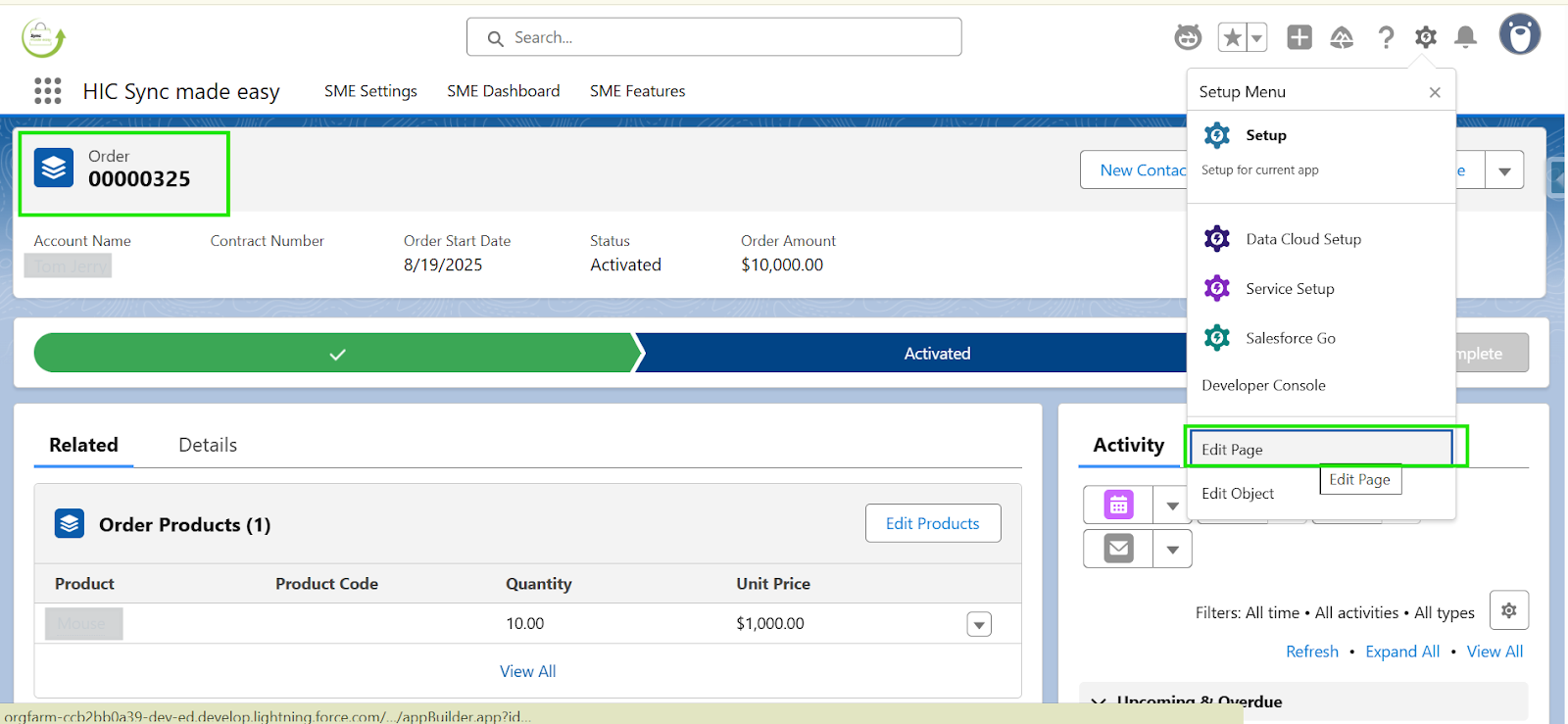 Step 1: Open the record page, click the gear icon (⚙ Setup), and then select Edit Page.