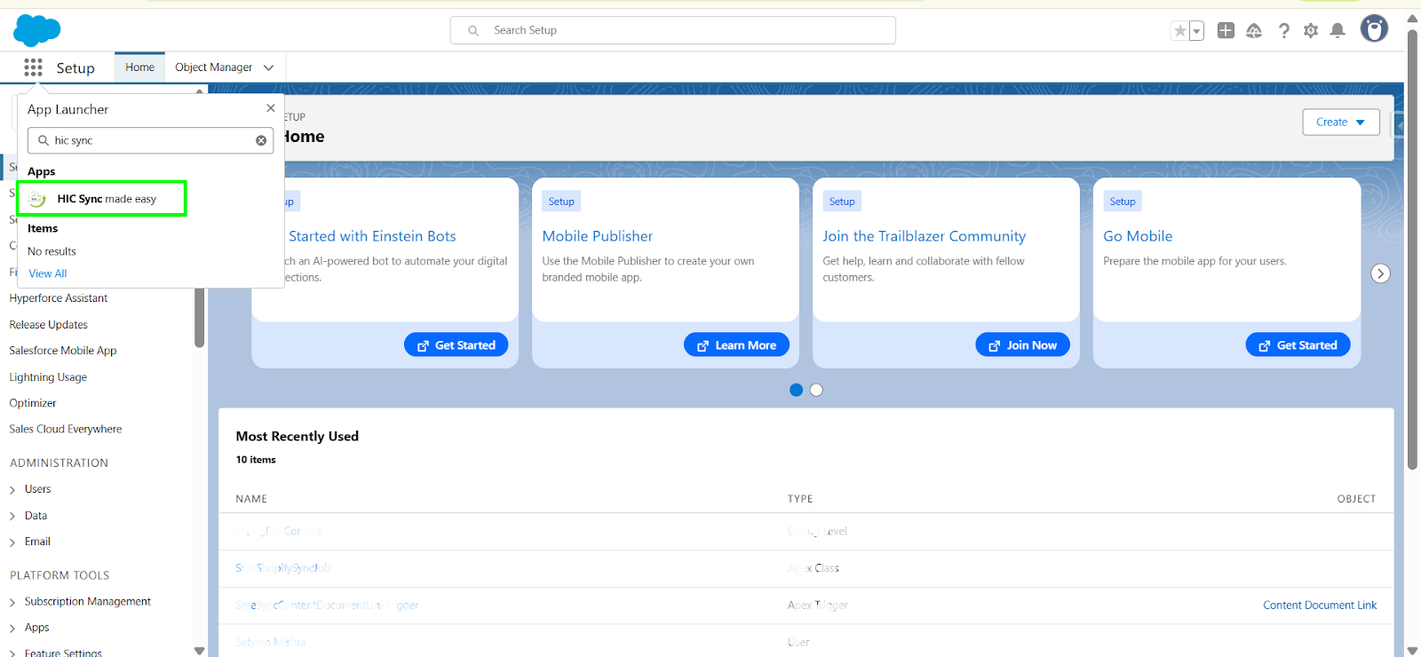 Step 1: Log in to Salesforce and navigate to the HIC Sync Made Easy App.