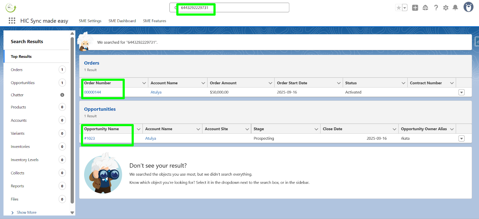 Step 7: In Salesforce, search for the order ID to verify if it has synced successfully from Shopify.