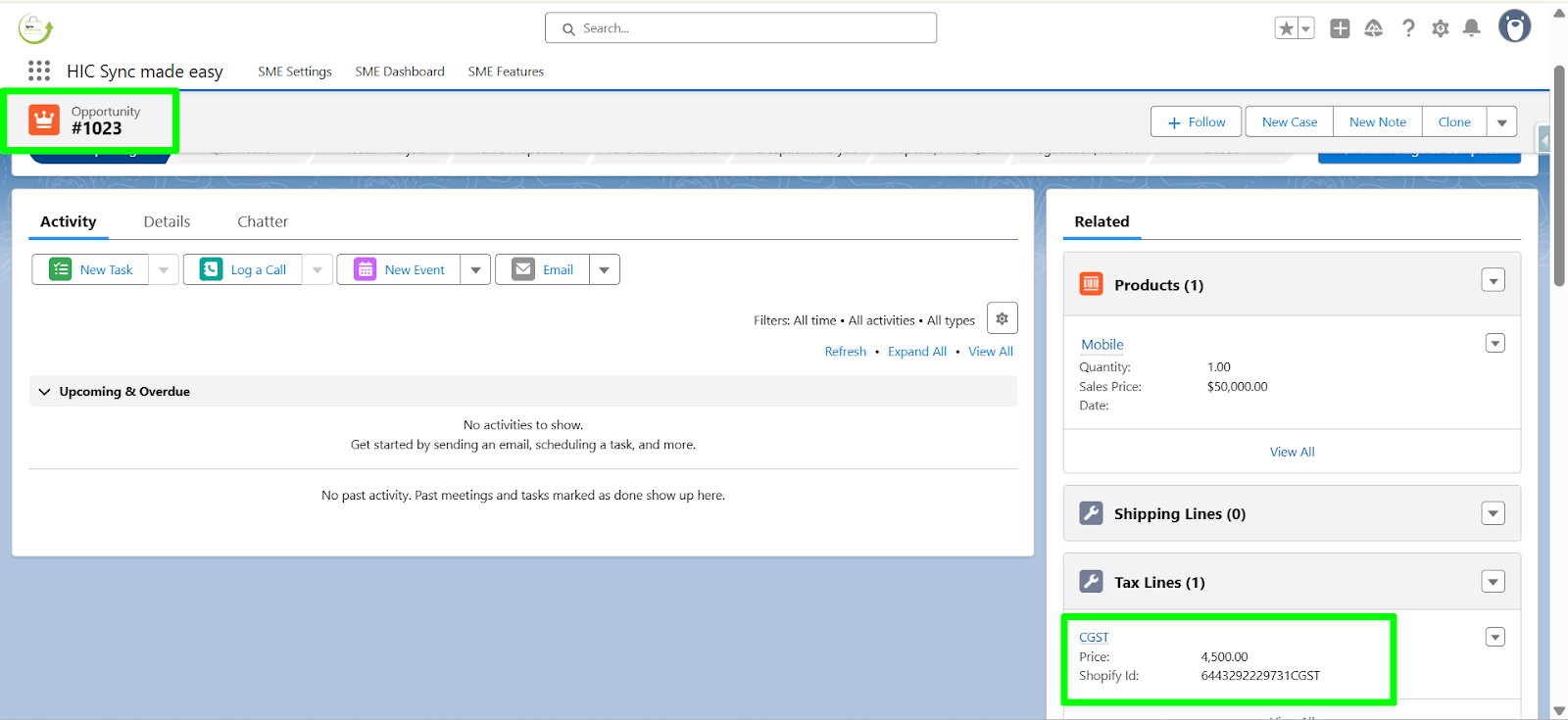 This completes the functionality of Shopify TaxLines Sync on Orders and Opportunities.