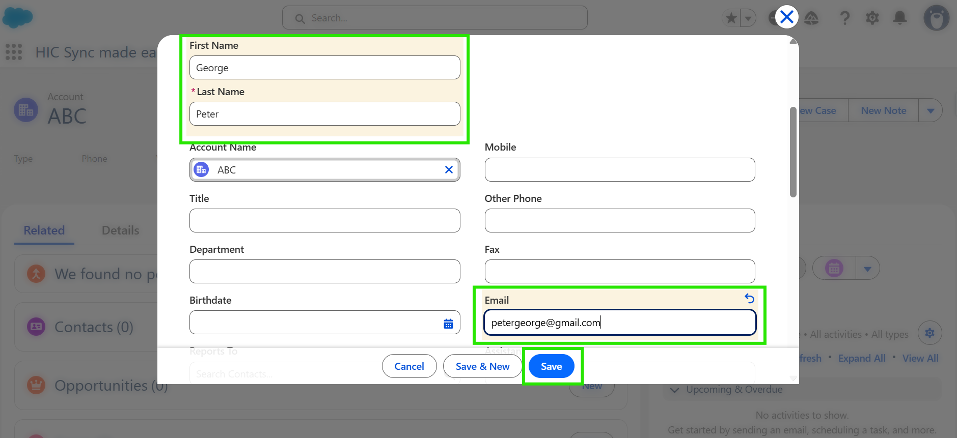 Step 4: Navigate to the Salesforce Account page and create a new account named ABC, then click Save.