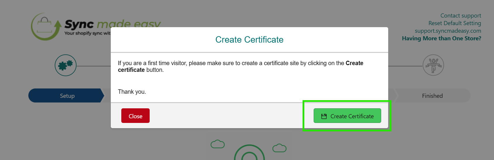 Step 5: Go back to the SME Settings Page & click on the “Create Certificate” button.