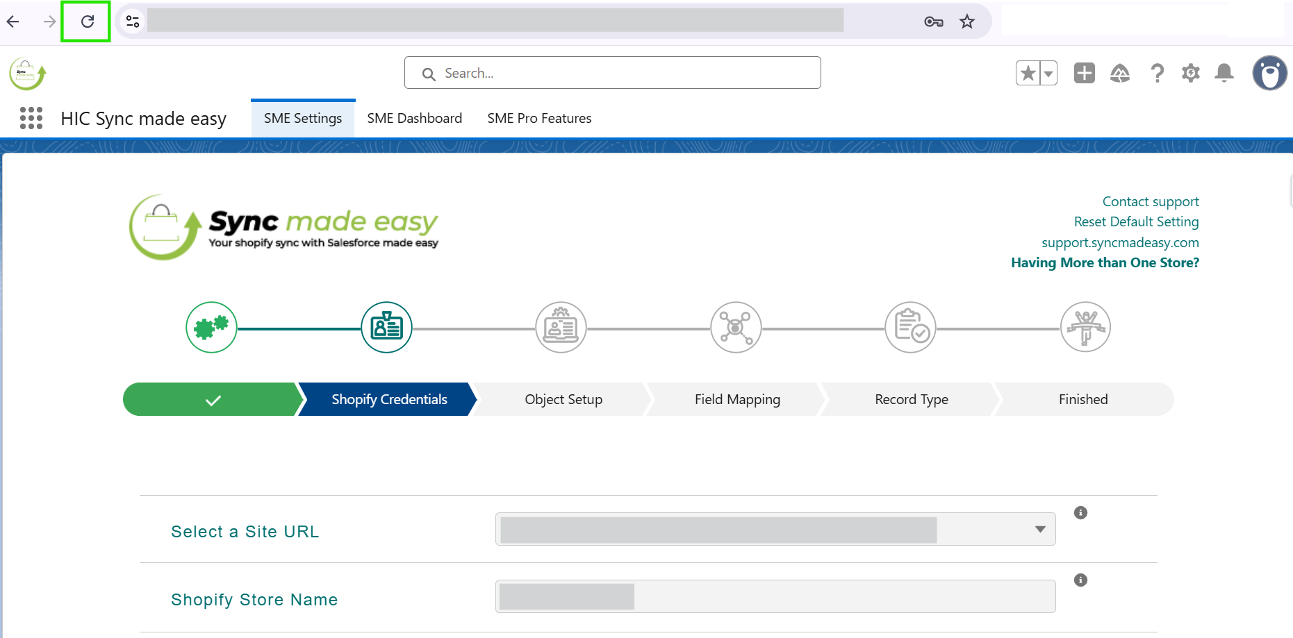 Step 8: Now go back to “SME Settings” and refresh the page. You will be redirected to the Shopify Credentials page.