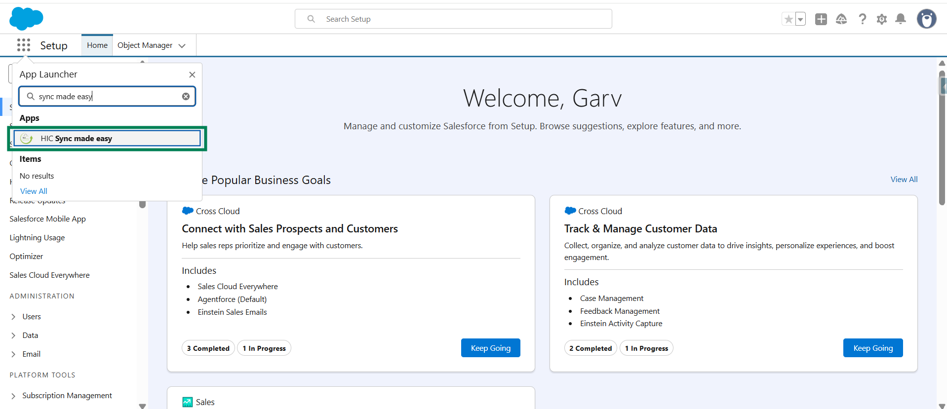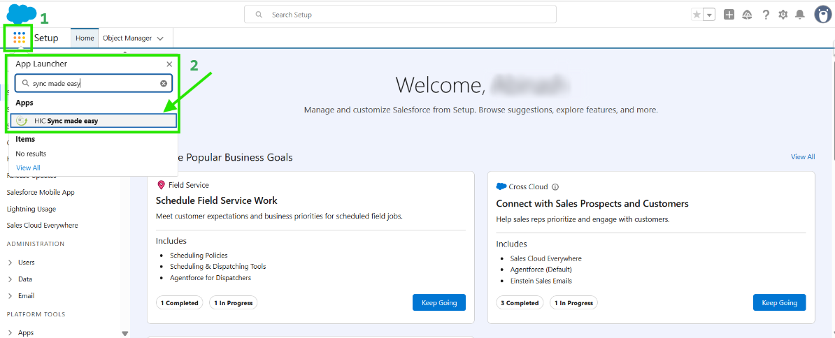 Step 1: Click on “App Launcher” and search for “Sync Made Easy” and click on it.