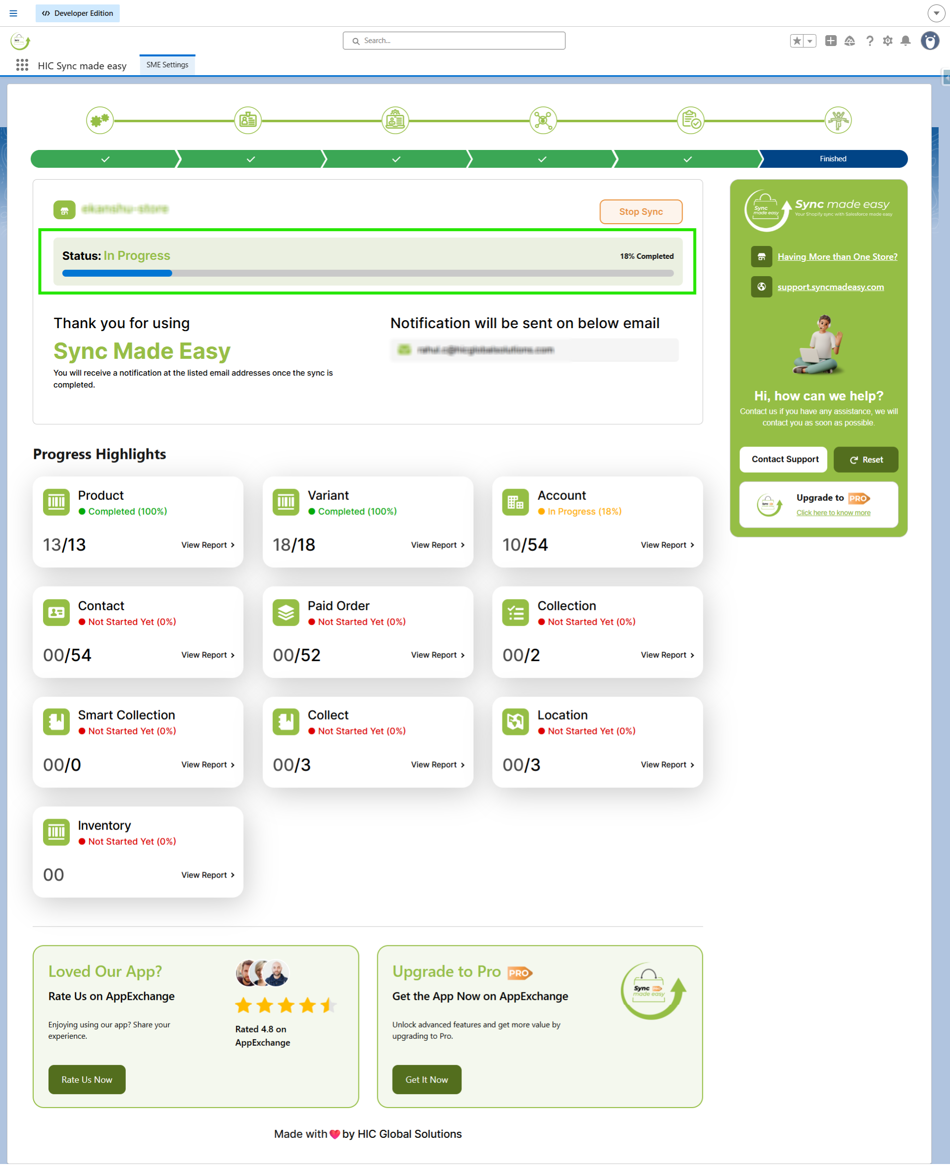 Once the batch sync is completed, you will be redirected to the Shopify Credentials page