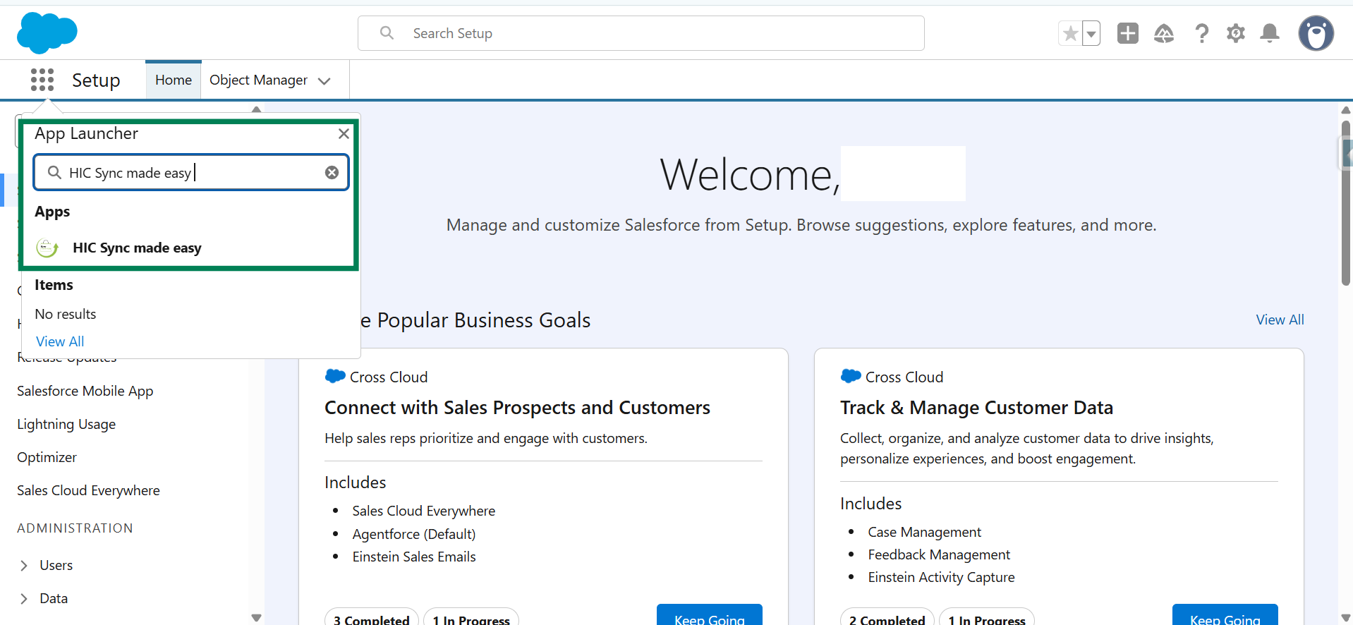Step 2: Click the App Launcher, search for HIC Sync Made Easy, and click the app to open it.