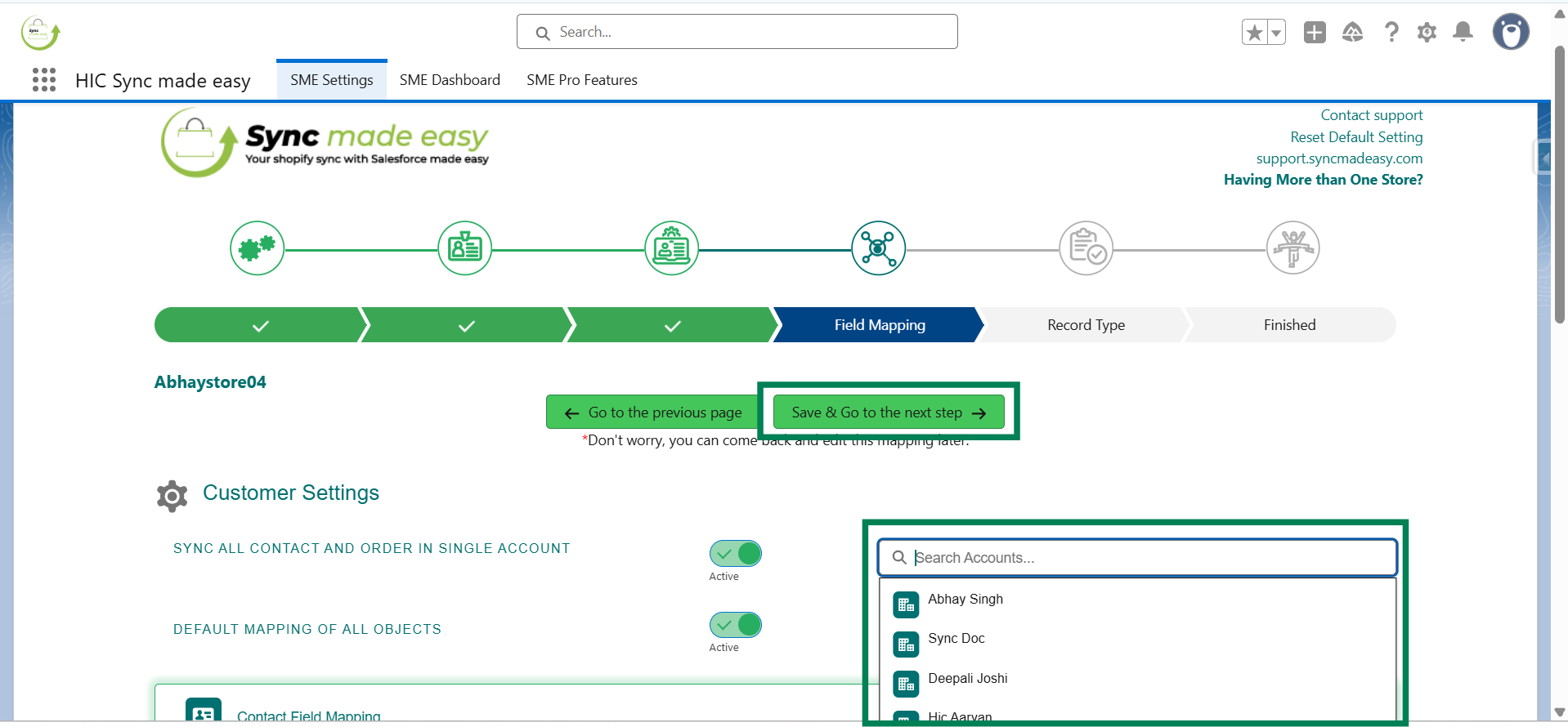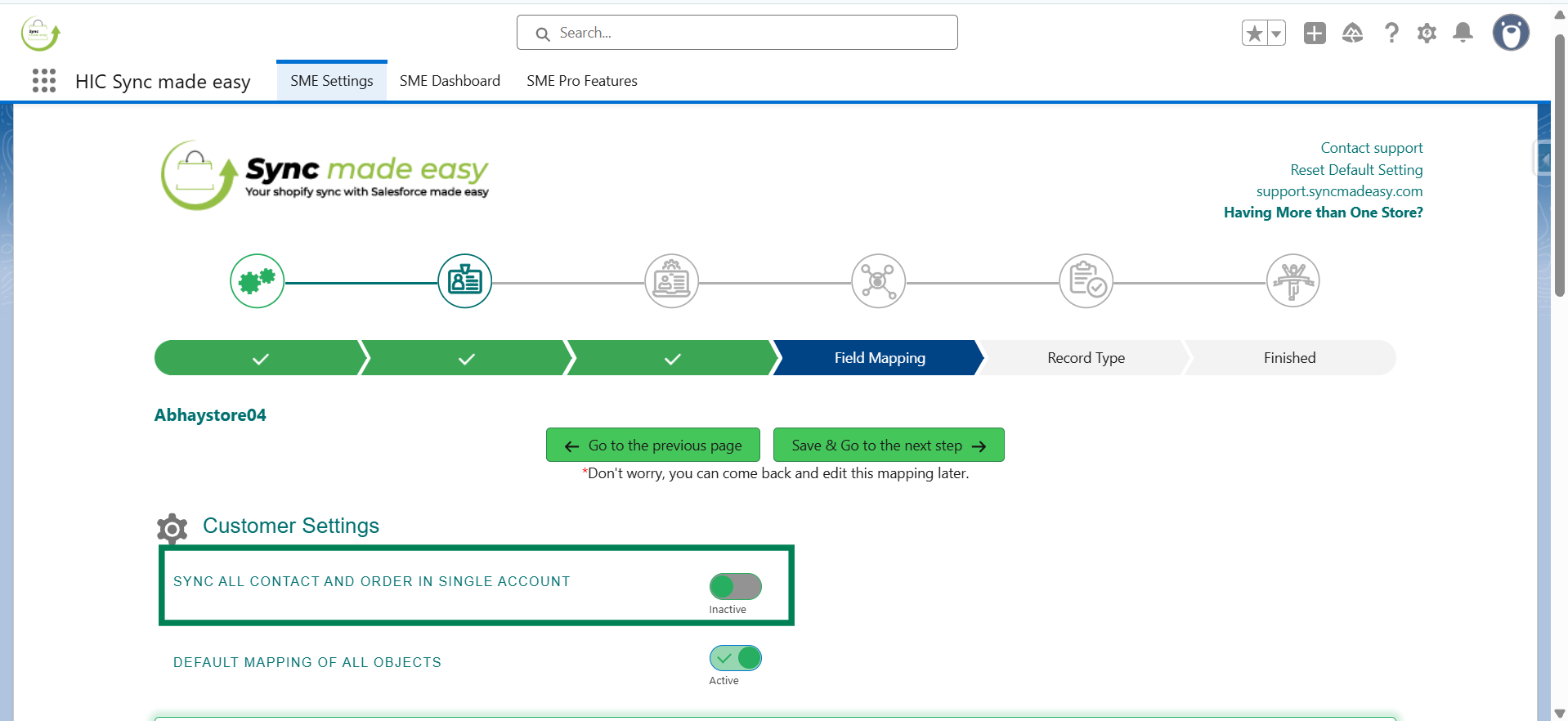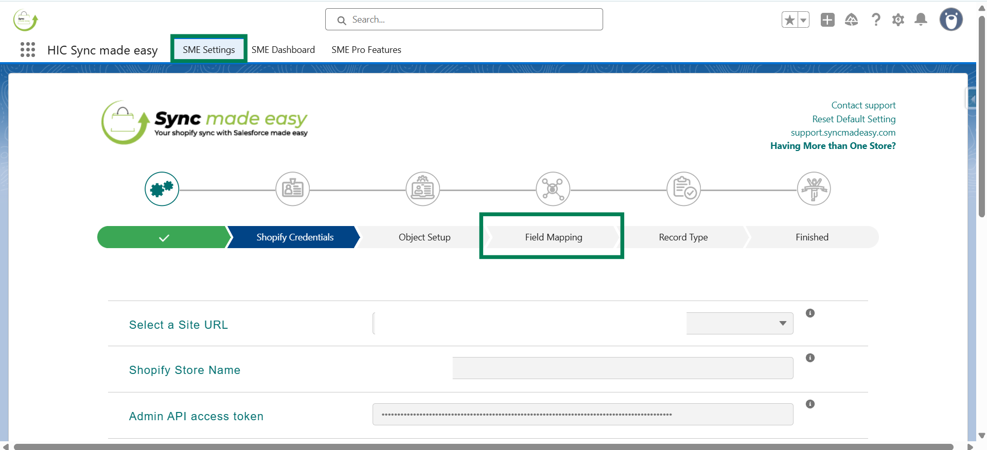 Step 3: From the SME Settings page, navigate to the Field Mapping page.