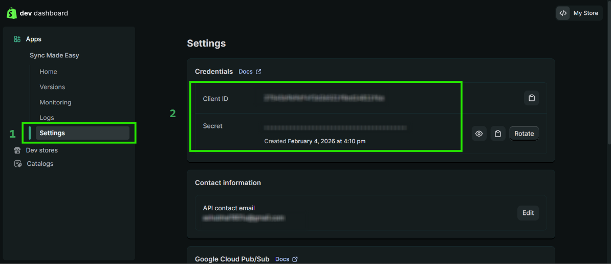 Step 15: Go to Settings and Copy the "Client ID" & "Secret Key".