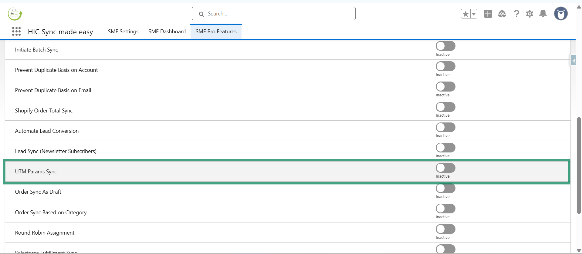 Step 4 - Enable the “UTM Param Sync” feature by clicking on the toggle button.