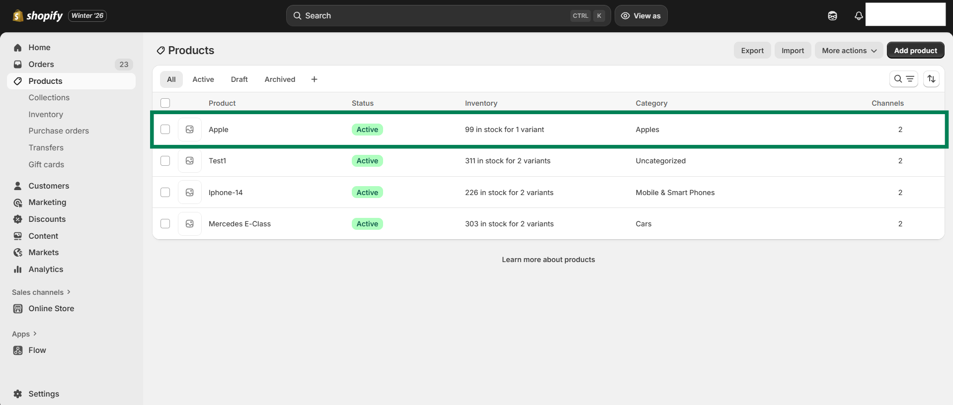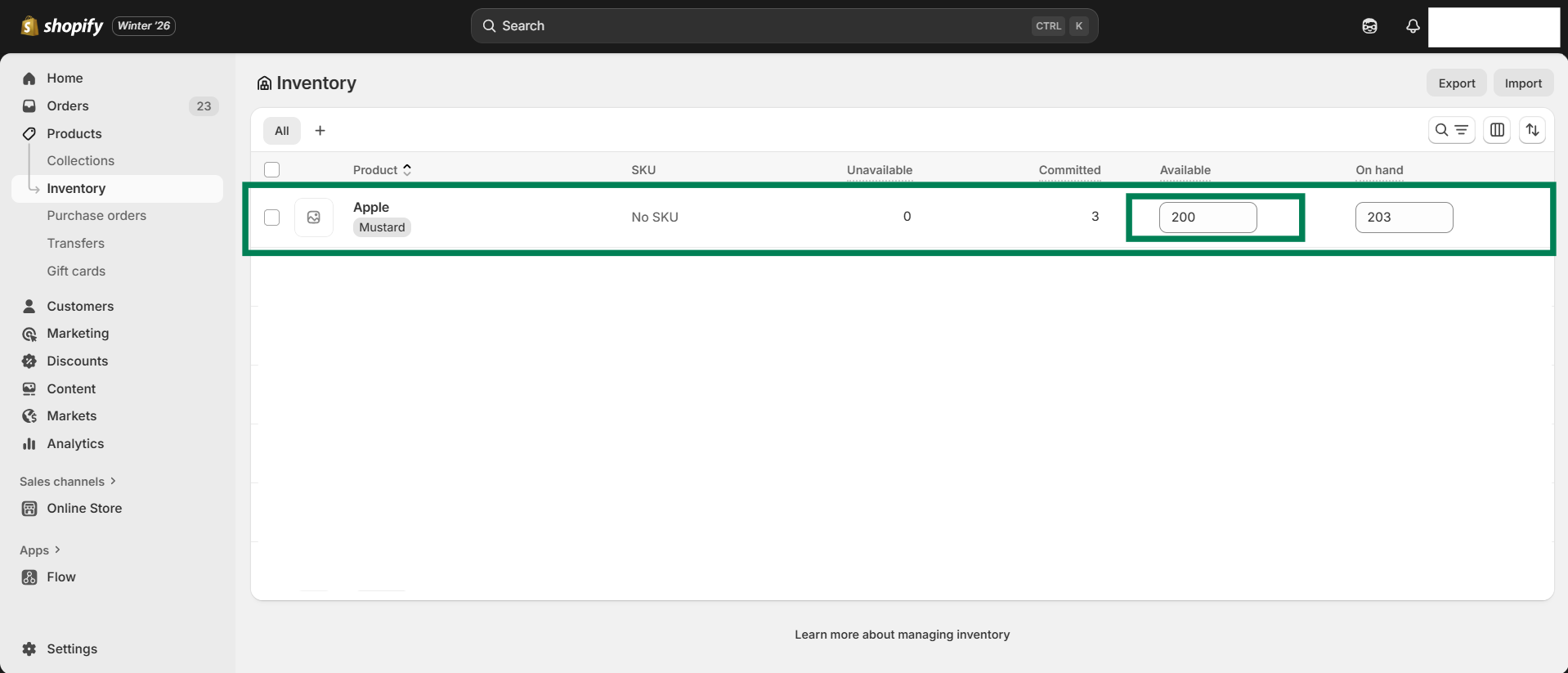 Step 11 - After clicking on the “Sync Inventory” button, go back to Shopify and check that the inventory of the product is updated.