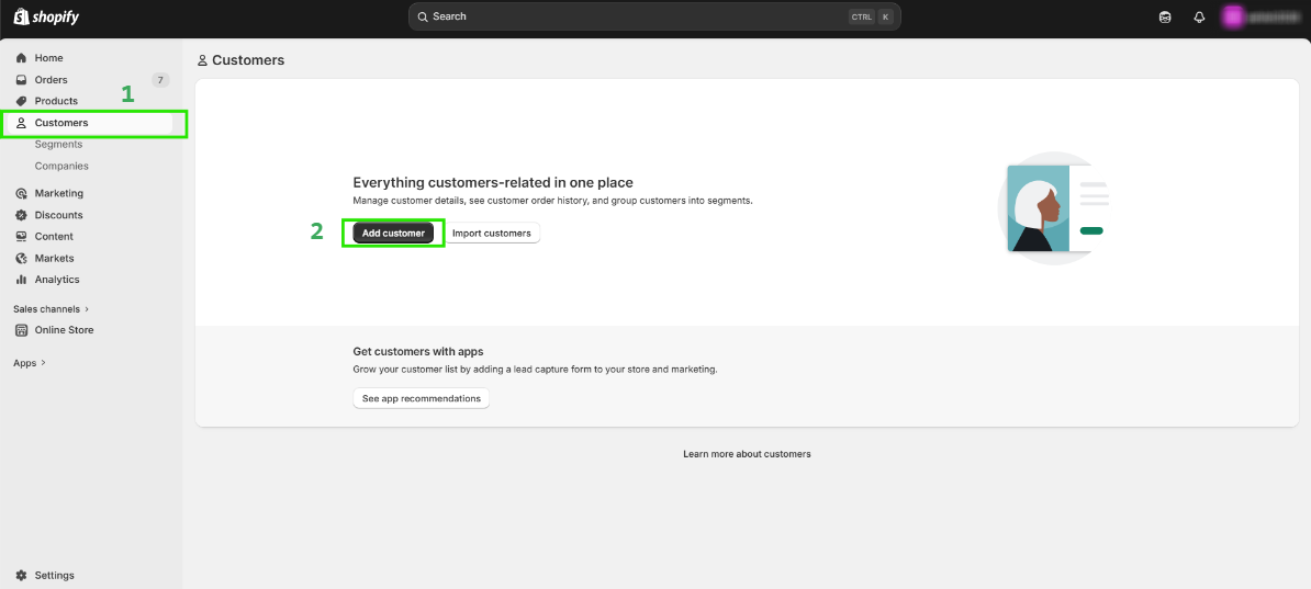 Step 1: Go to the Customers section in your Shopify store and click “Add Customer”.