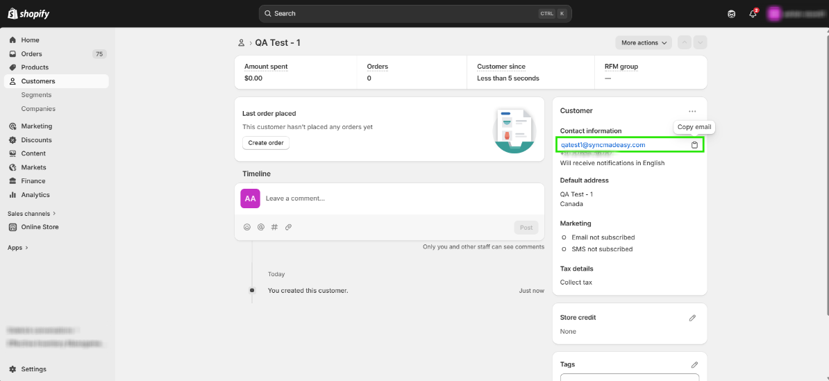 Step 3: Copy the customer’s email ID that you just created.