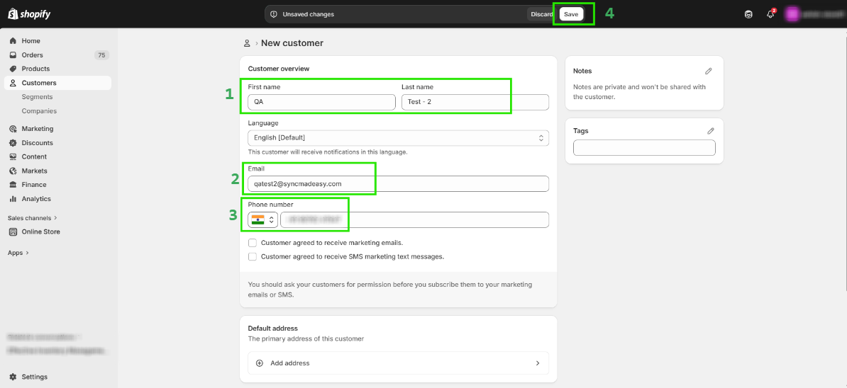 Step 2: Provide the First Name, Last Name, Email, and Phone Number, then click Save.
