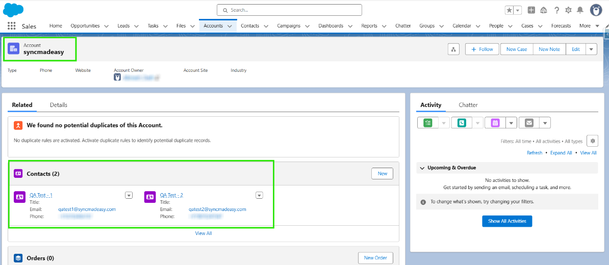 Step 7: Refresh the page in Salesforce and confirm that a new contact has been added to the existing account with the same domain.