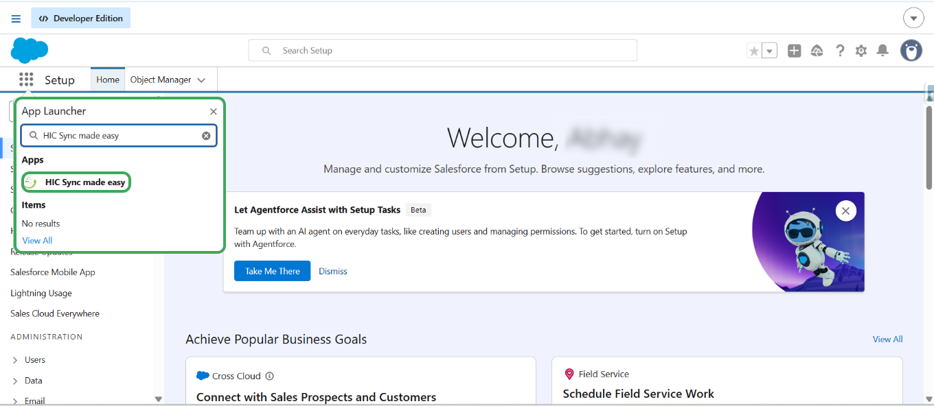 Step 1: Log in to your Salesforce & in App Launcher search for "HIC Sync made easy" and click on it.