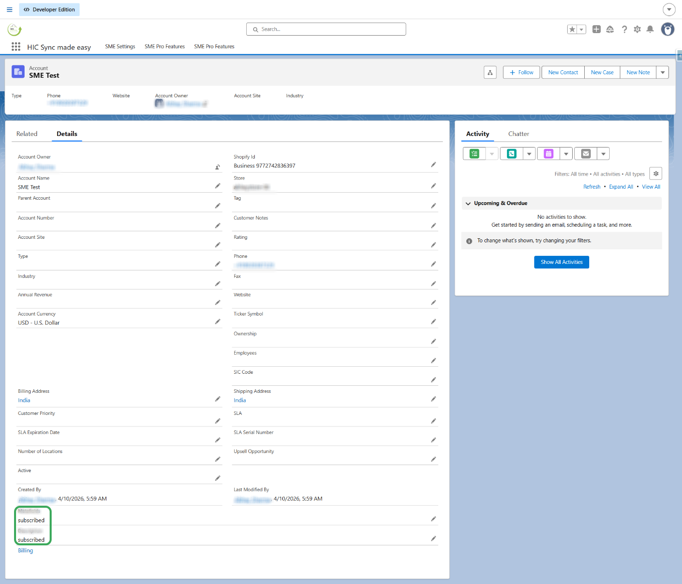 Step 6: In the detail section you will see the two fields which we mapped for Email marketing Consent and SME Marketing Consent synced as "Subscribed" in Salesforce.